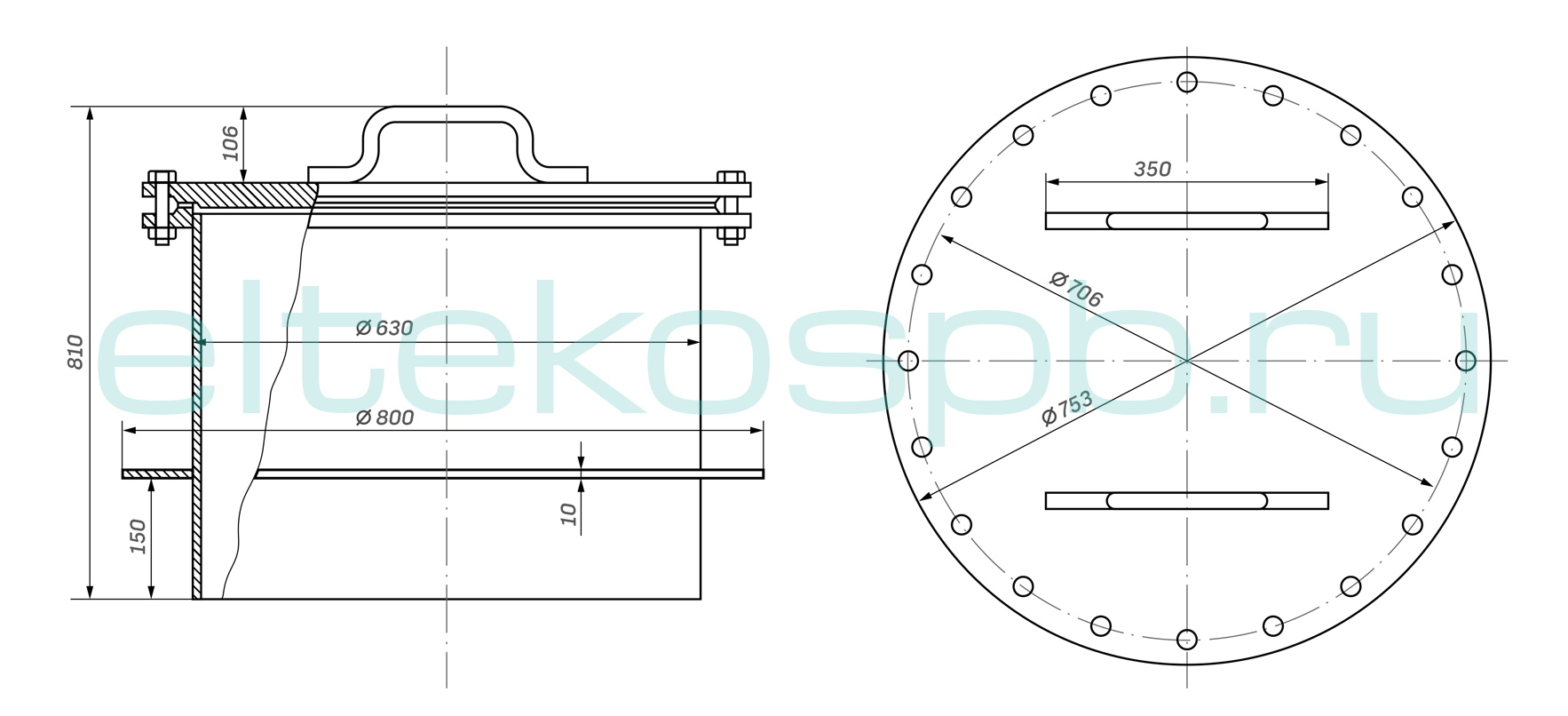 Люк герметический ду 600 мм. Люк-лаз ду 600 представляет собой стакан из трубы диаметром 600 мм с установленным в верхней части фланцевым соединением и опорным ребром. Такой люк-лаз устанавливается на верхней поверхности резервуара. Люк предназначен для чистки внутренней поверхности резервуара и проведения различных работ по обслуживанию и ремонту оборудования.