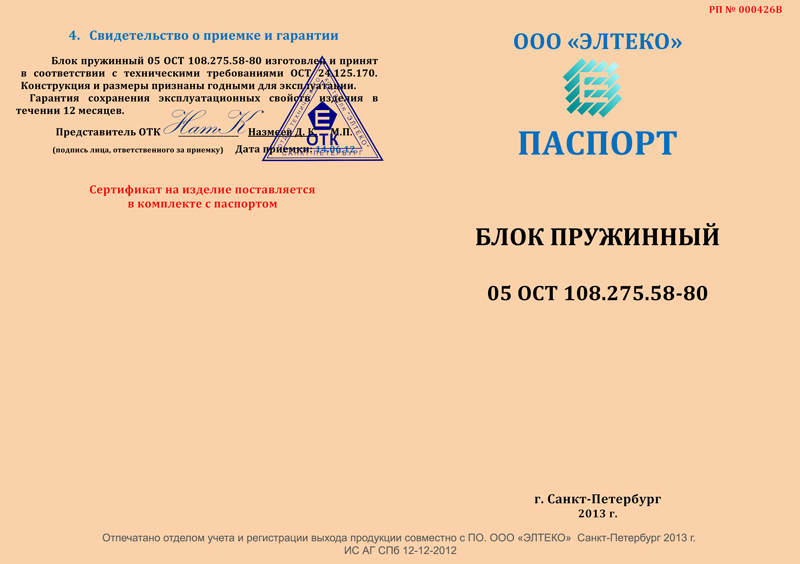 Блок пружинныйПаспорт качестваДокумент PDF [448 KB]
